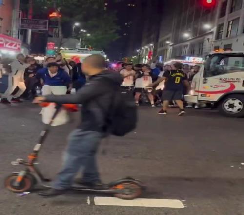 篮球资讯05月20日宣 在尼克斯淘汰凯尔特人后,纽约街头一群尼克斯球迷曾用垃圾袋扔砸一名身着哈利伯顿球衣的步行者球迷。据报道,这名步行者球迷名叫Hans Perez,他还是一名消防员。