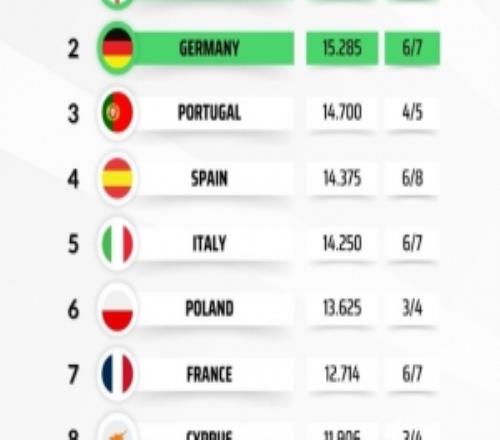 欧足联系数:英超大幅领跑,德甲次席,葡超第三西甲第四意甲第五