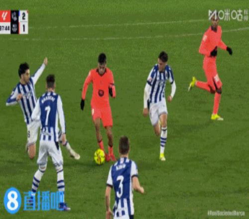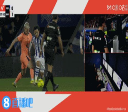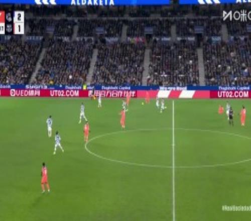 下半场补时9分钟。最终全场比赛结束,皇家社会2-1巴萨。