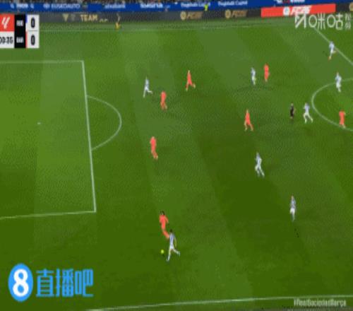 第46分钟,巴萨右路下底传中,后点奥尔莫跟进包抄中柱↓