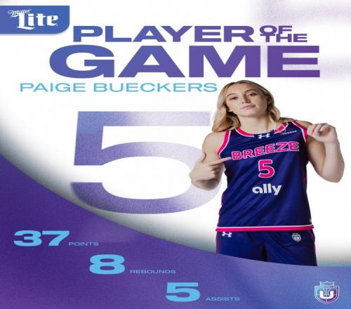 本场比赛Breeze的佩奇·布克斯出场20.4分钟,19投14中,拿到37分8板5助,当选全场最佳。