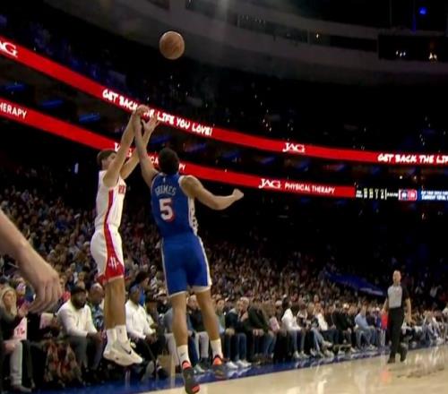 次节回来,恩比德主动造接触再次走上罚球线,申京抱怨:啥都是犯规,你就不能碰他!沃特福德送助攻,格莱姆斯双手砸扣打成2+1,申京先是快下上篮强打2+1,接着再补防大帽直接没收球权,予以回应。阿门假传真突,一步过掉防守起飞滑翔折叠暴扣,锁定今日十佳球。