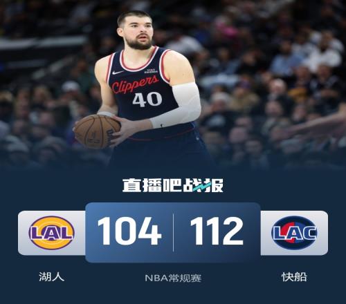 比赛开始,拉拉维亚连中三分为湖人开局,小卡接连中远投拿到8分强势回应,哈登串联对飙东契奇得分,湖人防守端连续漏人,快船连中三分一度领先双位数,次节双方展开拉锯战,快船始终保持10分左右领先,随后湖人连续犯错,哈登接连突破带队领先到近20分。下半场,小卡接连干拔带队8-2拉开20分以上领先,随后快船越打越好扩大领先,东契奇连传加攻一波14-3追近比分,末节快船进攻端又停滞,斯玛特站出来又攻又传带队一度追到差2分,哈登三分止血后快船轰10-0稳住局势,詹姆斯强打2+1再追到三分,但科林斯三分能给出回应,最终快船拒绝逆转112-104力克湖人。