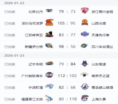 CBA常规赛第18轮继续开打,23日晚上的4场比赛当中,分别是宁波82-68青岛,上海110-80福建,广州112-102南京,辽宁79-...
