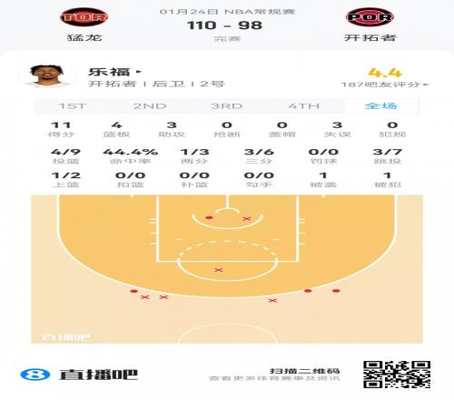 体育播报1月24日宣 NBA常规赛,活塞在主场104-111不敌火箭。此役,坎宁安缺阵一场后复出,他出战38分钟,投篮13中5,...