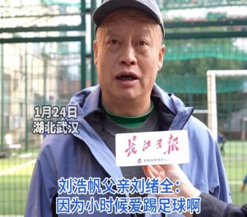 刘浩帆的父亲表示:“因为小时候爱踢足球啊,每天让我带他踢,我们客厅里灯都被打碎了不少。”