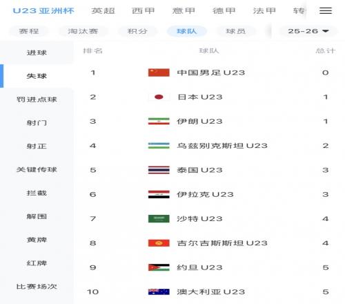 本届U23亚洲杯此前5场比赛90分钟和一场加时赛共480分钟零丢球,继续保持本届唯一零丢球球队的纪录。