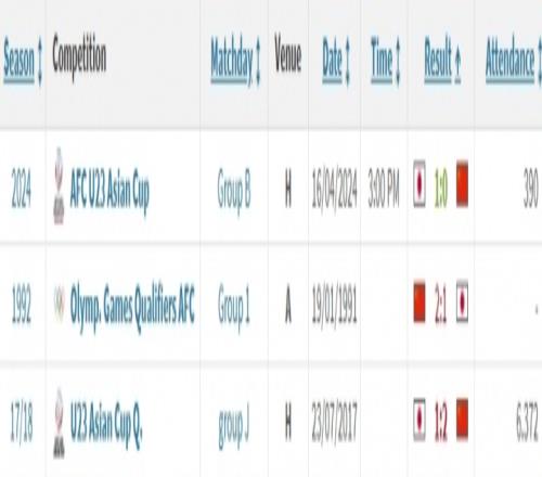 据数据统计,国足U23与日本U23历史上共有过3次交锋,中国队取得2胜1负的战绩,唯一一次失利是在2024年的U23亚洲杯小组赛阶段。