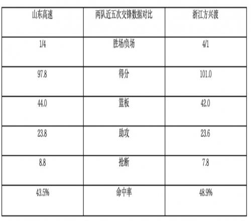 山东高速在与浙江方兴渡的历史交锋中处于下风,上赛季2次交手,浙江方兴渡取得了2胜0负的战绩。