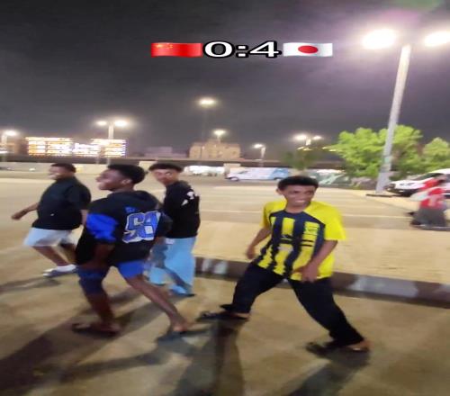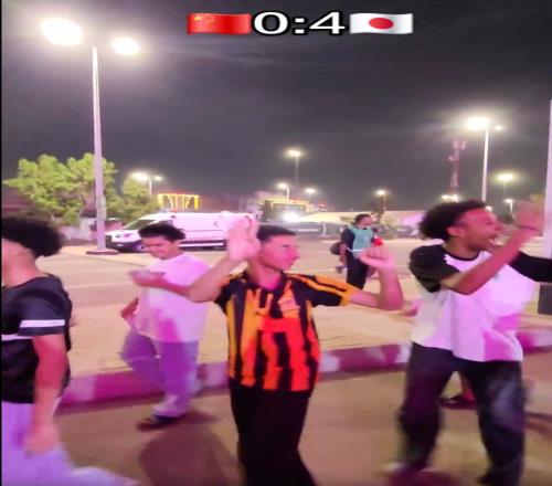 前往现场观赛的球迷“Mr-Q”在社媒晒出了一段视频,视频中,几名沙特当地的球迷朝中国球迷怪叫,并且比出0-4的手势进行嘲讽。