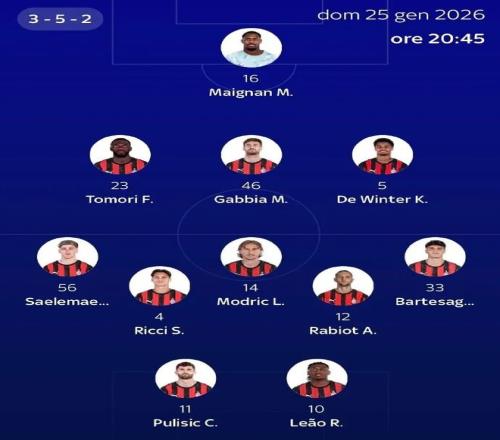 意大利天空体育发布了本场比赛米兰的预测首发: