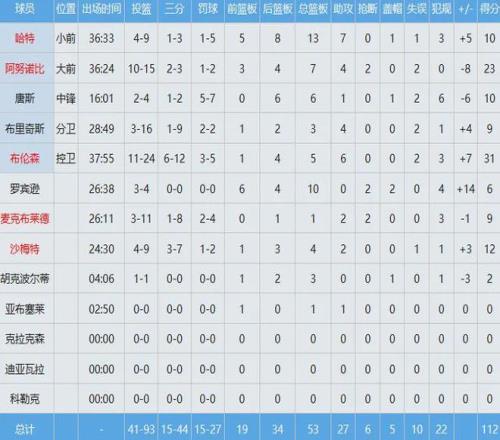 尼克斯数据如下:
