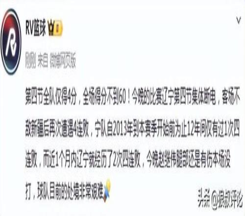 辽宁单节4分惨负新疆引热议!球迷狂刷官媒“输得脸都不要”