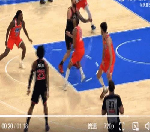 最后30秒,雷霆关键一攻,切特单打巴恩斯,突破急停跳投惨遭迎面大帽