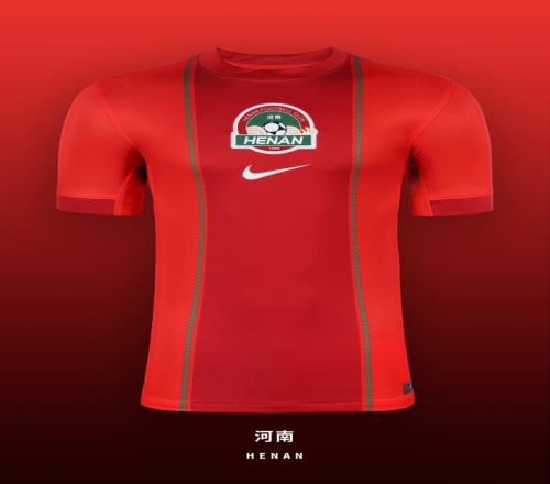 新赛季河南主场球衣以红色基调与绿色纹理,交织出河岸林木的延展节奏,将城市自然气息与俱乐部精神融入同一画面。