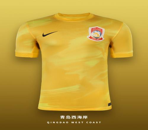 新赛季青岛西海岸主场球衣以醒目的亮黄色为主色,搭配黑色点缀,采用俱乐部徽章上龙凶猛而有力的元素,既有力量感又不失优雅。