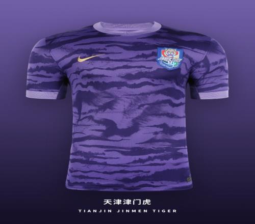 新赛季天津津门虎主场球衣以贯穿全身的动态纹理设计,释放出如猛虎奔袭时的节奏与爆发力。球衣整体展现出更具侵略性的速度感与力量感。
