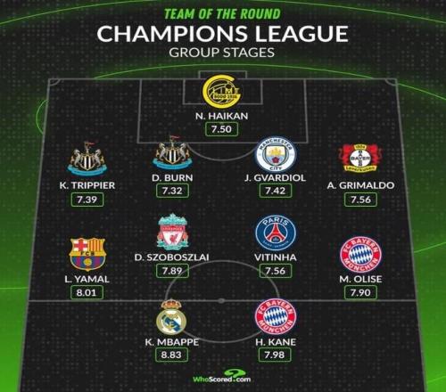 伴随着欧冠联赛阶段战罢,权威数据网站Whoscored评选出了一份瑞士轮联赛阶段场均评分最高的阵容。该数据网站致力于赛后球员评分,所参考的数据是综合性的,因此这套最佳阵容非常的合理。