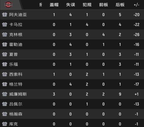 北京时间1月31日,在开拓者与尼克斯的比赛中,开拓者遭遇惨败。开拓者首节结束就落后15分,此后虽然缩小过分差,将悬念保持到最后一节,但末节崩盘,以97-127惨败给尼克斯。在这场比赛中,开拓者全队低迷,内线被完爆。正负值-26!开拓者主力中锋全队垫底,杨瀚森0投篮,队友拿球单干。