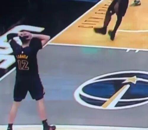 东子真是气不打一处来,被逼出界外之际,直接当着裁判和奇才主帅的面,急中生智将球砸向了奇才球员,还不忘摇头苦笑:MD,输不起是吧?