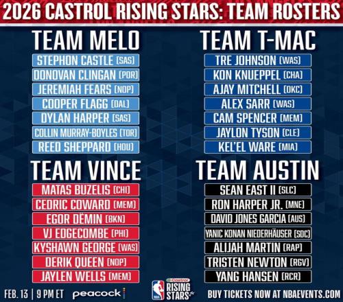 2026NBA全明星新秀赛对阵: