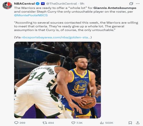 赛前根据NBC的报道,勇士会对扬尼斯进行丰厚的报价,勇士内部只有库里一人是非卖品。