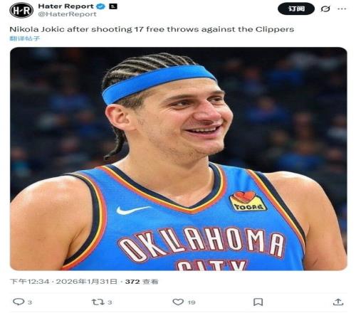 因此,美媒吐槽约基奇24分钟17罚,将其P图成亚历山大。