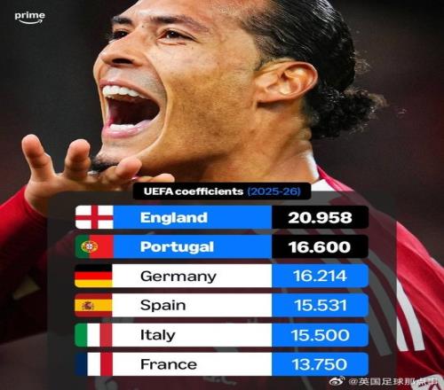 本赛季三级欧战联赛阶段全部结束,欧总联官网更新欧战系数积分:英超断层排名第一!