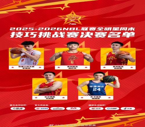 【单项赛晋级名单】今天晚间19:30,贵州遵义奥体中心体育馆进行了2025-2026NBL联赛全明星技巧挑战赛和三分球大赛的预赛,决赛名单已经出炉!各单项赛决赛将于2月1日正赛中场环节进行。