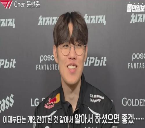 Oner:毕竟下路对线是比较敏感的对局,而且我觉得击杀会直接影响主导权,所以我们决定重点针对下路进行进攻,战略上是这样安排的。