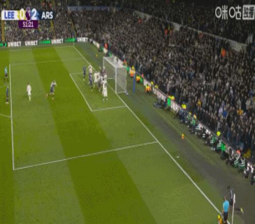 第38分钟,阿森纳开出角球造利兹联门将乌龙,阿森纳客场2-0领先!