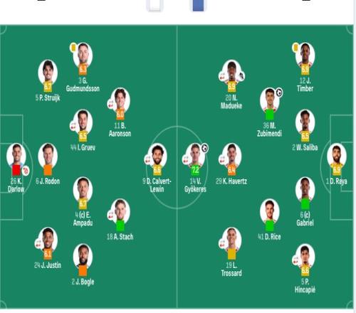 利兹联首发:26-达尔洛、2-杰登·博格、3-古德蒙德森、24-贾斯汀(46’8-朗斯塔夫)、4-阿姆帕杜、5-斯特鲁伊克、6-罗登、11-阿隆森(71’40-博纳诺特)、18-斯塔赫(81’29-尼翁托)、44-古尔夫(46’19-奥卡福)、9-勒温(85’10-皮罗)。