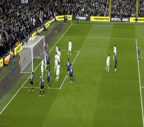 第38分钟,马杜埃凯主罚角球,门将达尔洛和勒温撞在一起,将球打进自家球门。