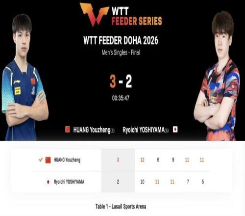 体育播报2月1日宣 WTT支线赛多哈站男单决赛,​​​黄友政3-2战胜吉山僚一,夺得冠军!