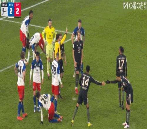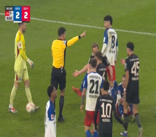 第99分钟,斯坦尼西奇被武什科维奇推搡撞向另一名汉堡球员,主裁判判罚进攻犯规,引发拜仁球员更激烈的抗议。