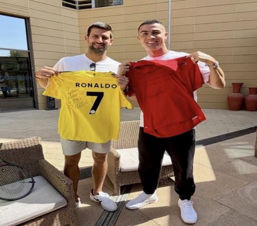 去年12月的环足奖颁奖典礼,德约科维奇荣膺年度环球体育奖,C罗为其颁奖。德约发表获奖感言时表示:“我没想到会是这样(能够获奖)。我来这里是为了庆祝足球运动员们度过了多么精彩的一年。我们(我和C罗)相识于很多年前,当时他来看我比赛。他的到来既给了我额外的压力,也激励着我。感谢你的发言,也感谢你视我为朋友。我认为C罗激励着我。希望我们俩能同时达成目标,他实现1000球里程碑,我达成25个大满贯冠军。”