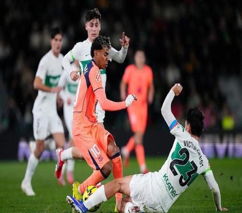 北京时间2月1日,西甲第22轮,巴塞罗那客场挑战埃尔切。比赛中。图源:视觉中国上半场第7分钟,奥尔莫中路直塞,亚马...