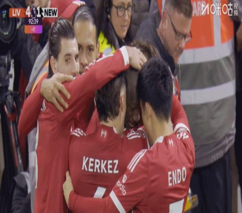 科纳特经历父亲离世的巨大挫折后,本场复出破门,利物浦全队向科纳特致以安慰。阿利松也穿越整个球场,过来拥抱科纳特。