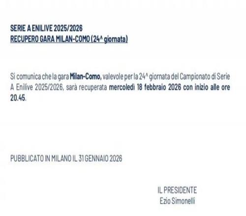 据意甲联赛官网的消息,米兰主场与科莫的补赛时间确定,将在北京时间2月19日03:45进行。