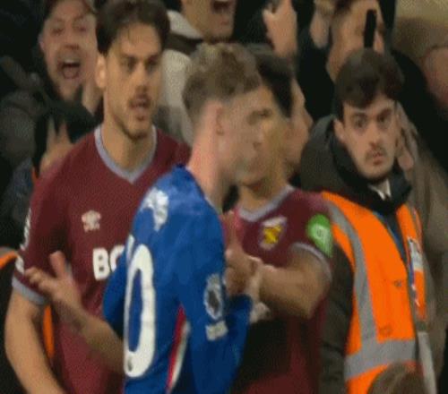 冲突中,西汉姆联后卫托迪博上来锁喉佩德罗,中途希腊国脚马夫罗帕诺斯还一巴掌想扇帕尔默,庆幸的是帕尔默反应敏捷迅速躲开,才免遭对手偷袭。而佩德罗再次为队友出头,怒推马夫罗帕诺斯。