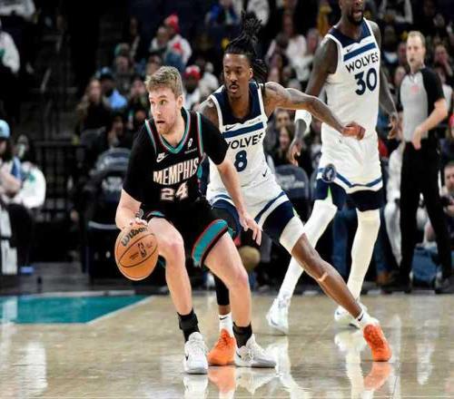 灰熊过去5场遭遇5连败,森林狼过去3场连赢勇士、独行侠与雷霆收获3连胜,本赛季首次交锋森林狼主场110-116输给灰熊。本场森林狼缺少香农,灰熊缺少贾伦、伊迪、莫兰特、克拉克等7位球员。首节开局森林狼2-7落后,爱德华兹引领一波9-1攻势反超3分,双方之后缠斗至森林狼18-16领先。森林狼内外开花一波12-3攻势扩大11分优势,科沃德上篮命中,首节结束森林狼30-21领先灰熊。首节森林狼22中11,其中三分9中5,爱德华兹9中4得到12分与兰德尔3记三分9分;灰熊22中8,其中三分12中1。