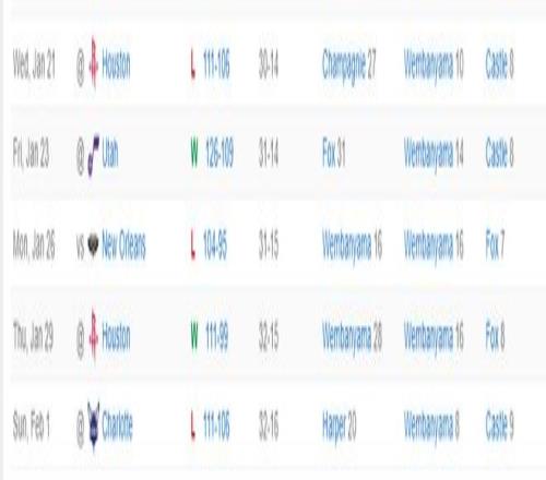 马刺过去的五场比赛已经输掉三场,就连爵士、黄蜂都能输,文班亚马的稳定性出现了巨大的问题。
