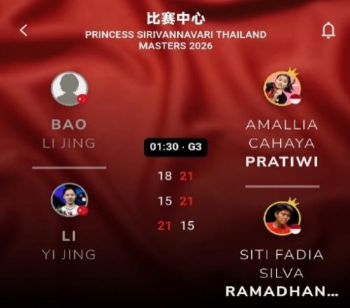 体育播报2月1日宣 2026年泰国羽毛球大师赛女双决赛,鲍骊婧/李怡婧1-2不敌阿玛莉亚/拉马丹蒂,无缘女双冠军。