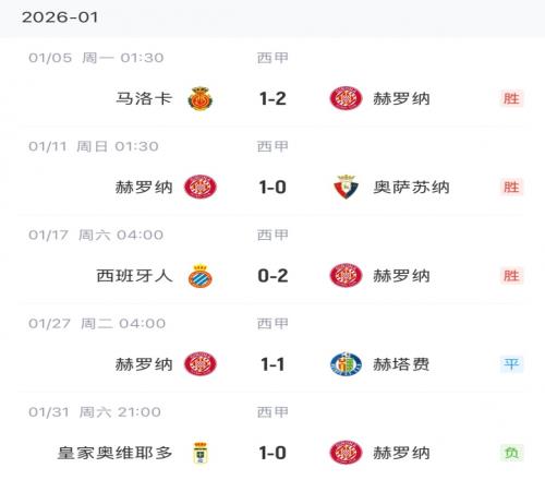 体育播报02月01日宣 本轮西甲,赫罗纳爆冷客场0-1负于副班长皇家奥维耶多,巴萨外租门将特尔施特根加盟赫罗纳后迎来两轮不胜。