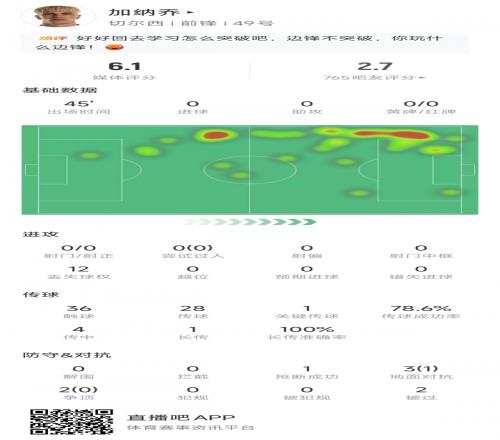 加纳乔昨晚vs西汉姆数据: