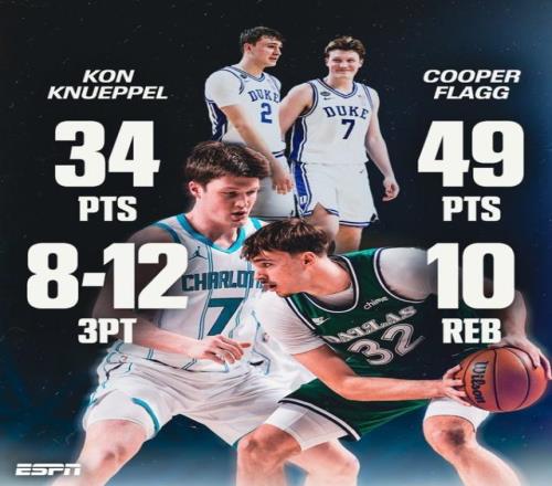 时间倒回2024年秋天,弗拉格和克尼普尔是杜克大学的两名大一新生,二人同为五星高中生,证明着那一届球队的招募工作有多成功。