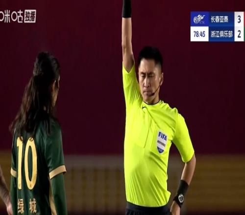 上赛季9月的中超比赛,亚泰vs浙江,比赛第79分钟,李提香被判犯规后染黄,随后不满判罚贴脸抗议马宁,再吃一黄被罚下,浙江剩9人应战!最终九人浙江3-3读秒绝平亚泰。
