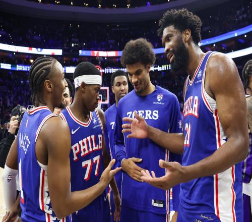 最重要的是,周六晚上本该是一个庆祝的夜晚——76人正在致敬2001年由阿伦·艾弗森率领的那支总决赛球队。那支球队的许多成员都来到了现场。这本该是76人本赛季最光彩夺目的夜晚之一。