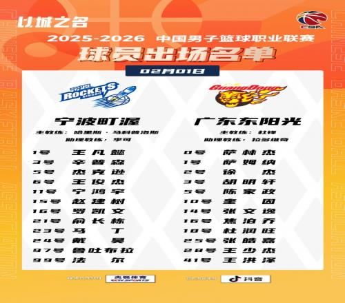 体育播报2月1日宣 19:35宁波将在主场迎战广东,赛前大名单出炉。