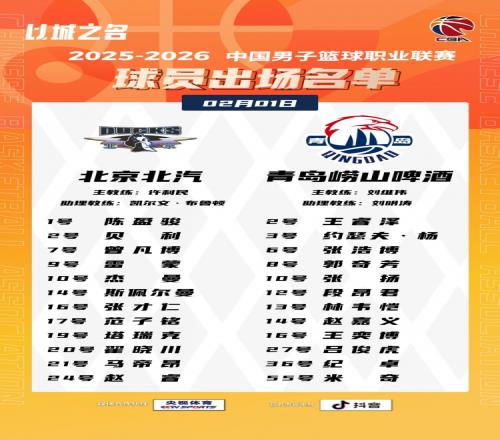 体育播报2月1日宣 19:35北京将在主场迎战青岛,赛前大名单出炉。